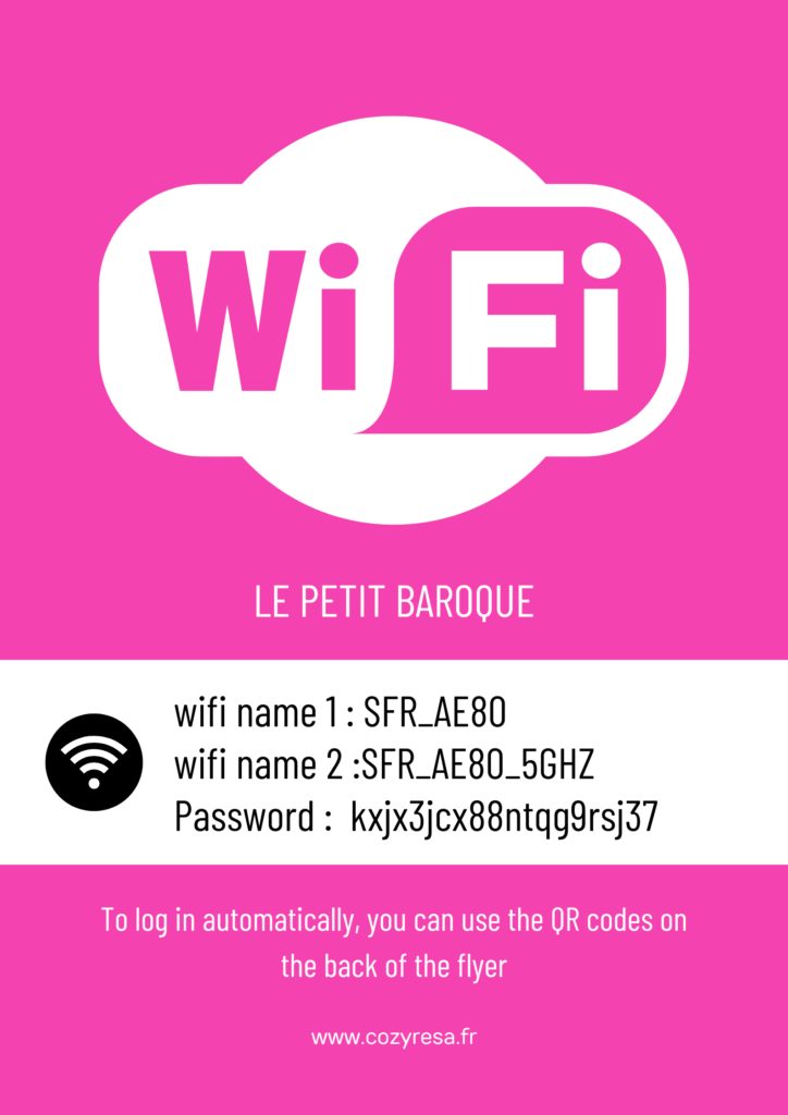 Le petit baroque offers you a high-speed fibre internet connection that you can use wired via the various network sockets, or by connecting your devices via wifi.